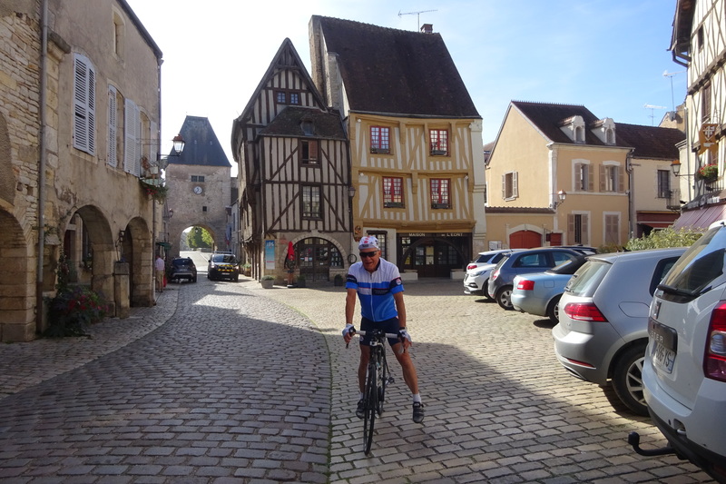 Le deuxième jour m’entraine sur la colline de Vézelay, passage obligé pour les pèlerins se rendant à St. Jacques de Compostelle. A quelques mètres de la célèbre basilique qui voit défiler plus d’un million de fidèles chaque année, je chute lourdement sur un dévers. Les muscles chauds, je repars vers mon but sans trop me soucier des dégâts. Je pointe au siège d’une congrégation de religieuses pas trop gênée par ma tenue en cuissard court. Un petit détour dans la basilique classée au patrimoine mondial de l’Unesco pour apprécier la beauté du site.