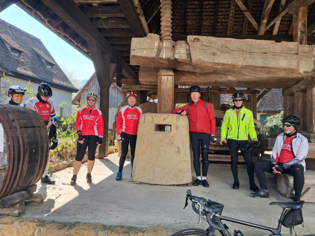 Départ pour le parcours de reconnaissance en direction du vieux pressoir à Grunern en Allemagne.